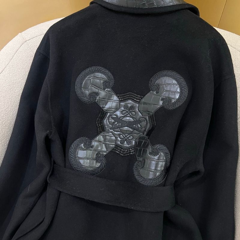 🐴Herm* luxurious and elegant heavy embroidered cashmere coat. 10% cashmere, 90% wool. Cut on imported German 🇩🇪 machines. The smooth lines are stunning! The entire coat is exquisitely embroidered, accented by genuine leather crocodile print, giving it an air of luxury and a sense of detail. Size: 36/38/40