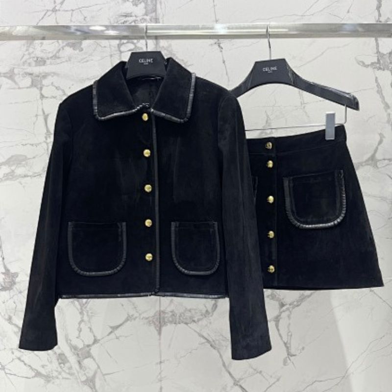 Celine Straight Blouson Jacket and Celine Mini Skirt in Suede
