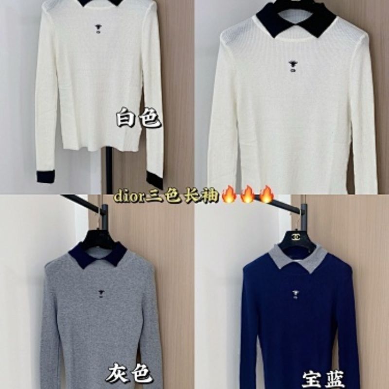 Christian Dior long-sleeved top with a grey collar and the signature Dior bee embroidery.