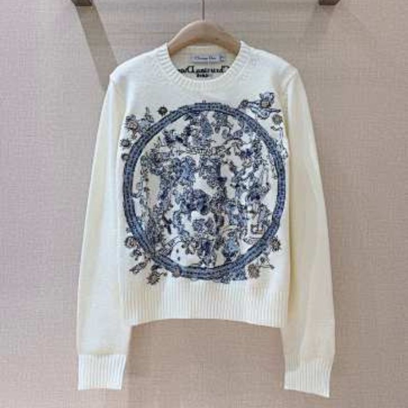 Dior embroidered sweater in ecru cashmere and wool