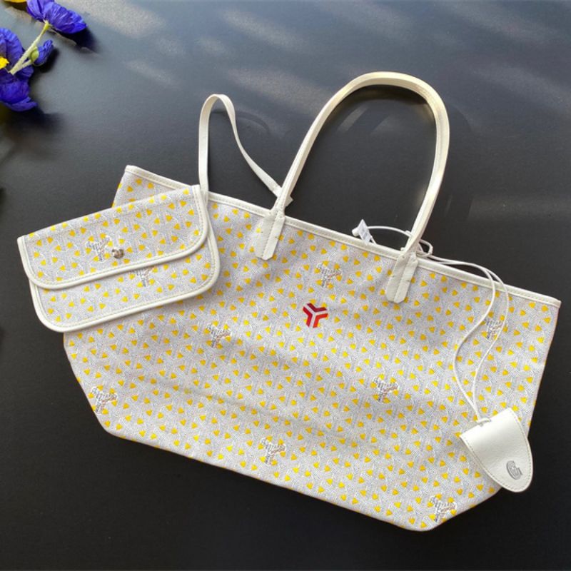 Goyard Saint Louis Claire Voie tote bag in white with a yellow interior