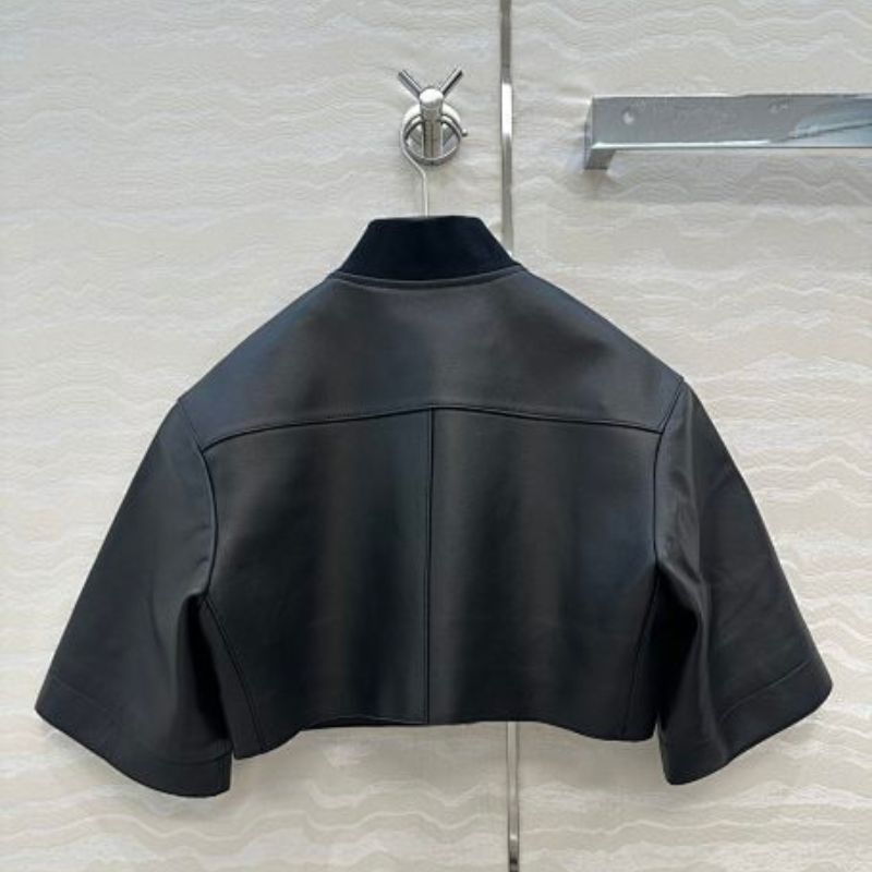 Hermès cropped, short-sleeve leather (or faux leather) jacket.
