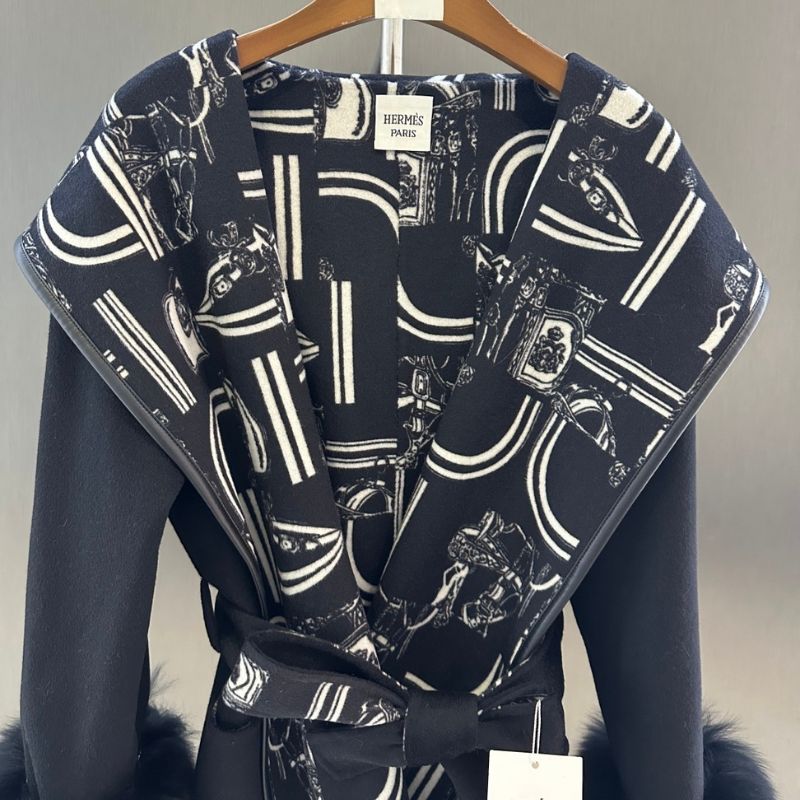 Hermès *New Fall/Winter Wool Coat Classic Print High-end Fashion Wide-version Bathrobe Series Coat Details Perfect Fall/Winter Must-Have Item SML (Length 75, Chest 114, Size M)