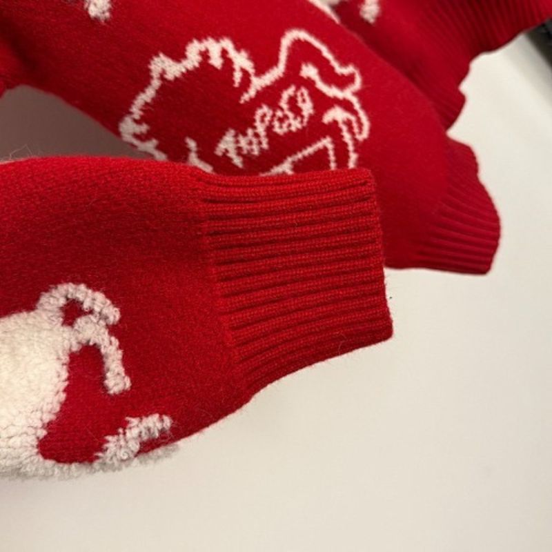 Hermès red knit sweater featuring a white horse motif