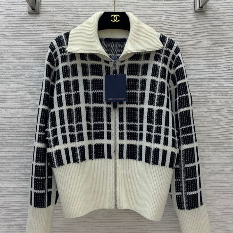 Louis Vuitton High-End Wool Blend Plaid Knitted Cardigan