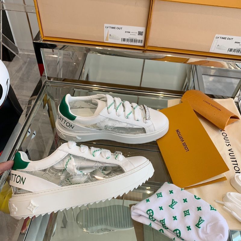 Louis Vuitton Time Out Sneaker with Green Monogram.