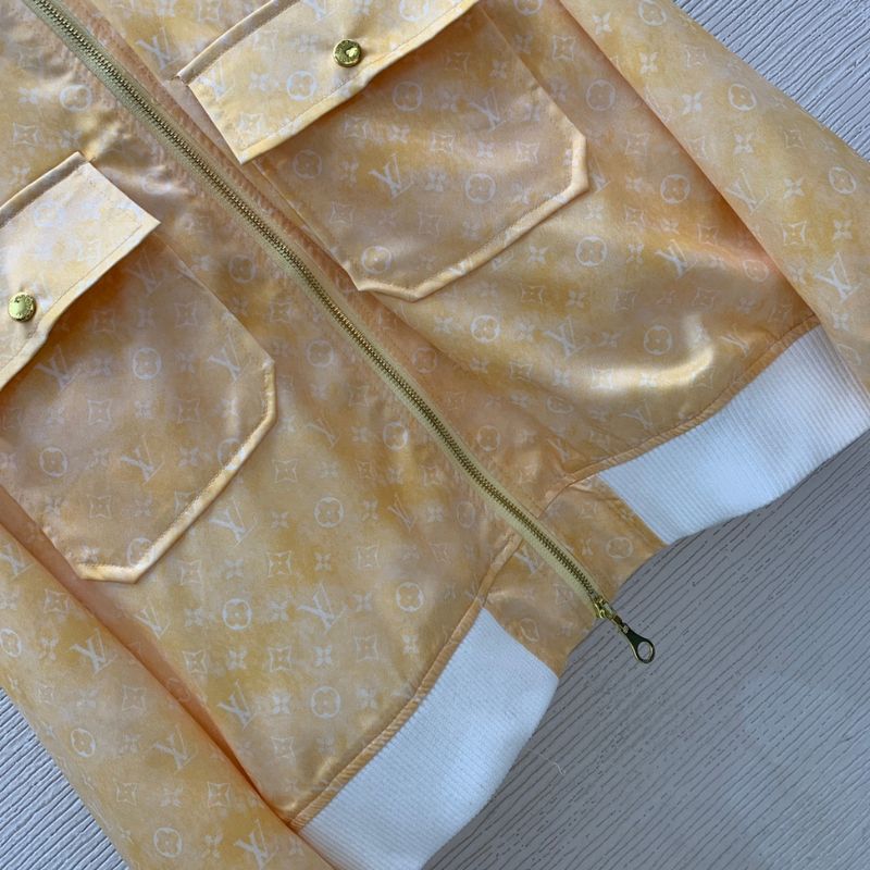 Louis LV24 Early Autumn Collection presents a custom-designed stand collar jacket, featuring the iconic monogram print, letter logo hardware accessories, and double pockets. With a loose yet slimming fit, this zip-up short jacket blends luxury with sporty elegance, making it a versatile statement piece.
