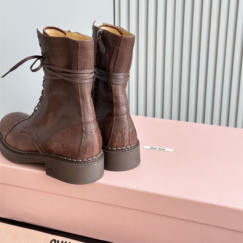 Miu Miu Calfskin Cap-Toe Combat Boots