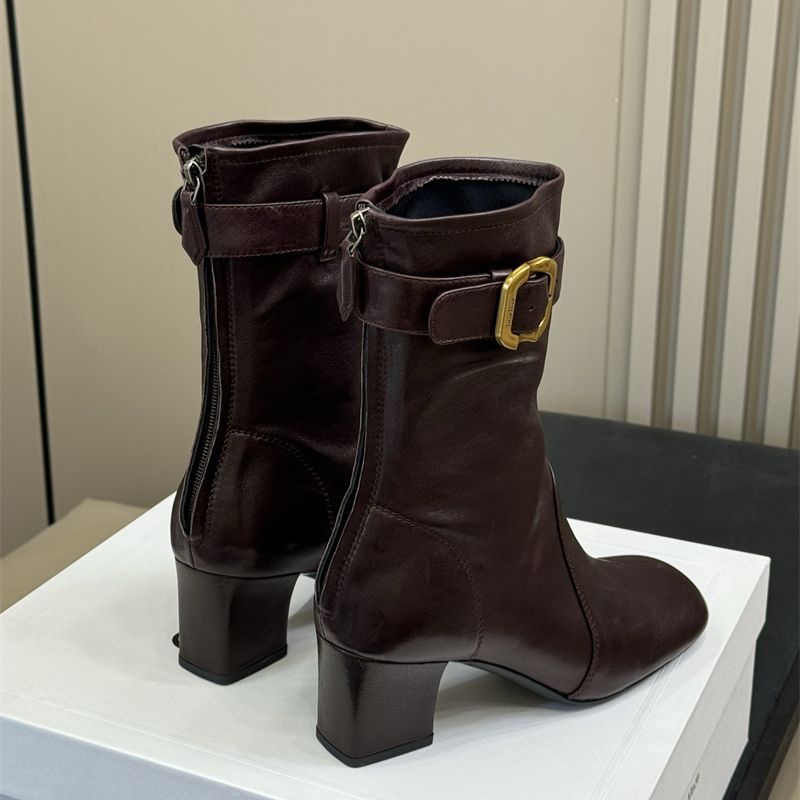 Miu Miu Chloé Marcie 45 smooth leather block heel ankle boots.