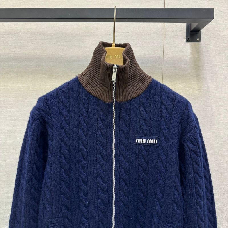 Miu Miu Logo-Embroidered Cable-Knit Zip-Up Cardigan.